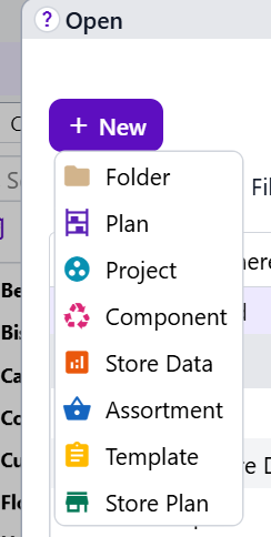 Use File > New, then choose the File Type you want to create. Alternatively, the Filesystem Open dialog has a +New menu, which provides the same options.