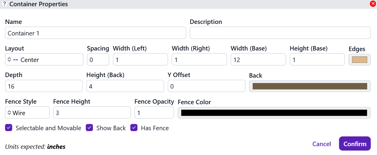 Both crop_16_9 Shelves and inventory_2 Containers may have a Fence if the Has Fence checkbox is checked.