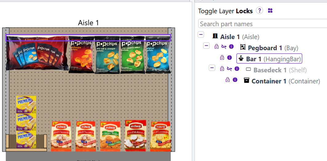 Locking is useful when a Part should not be treated as separate from its parent(s), such as a Rack with fixed Shelves or a Panelboard with products in fixed positions.