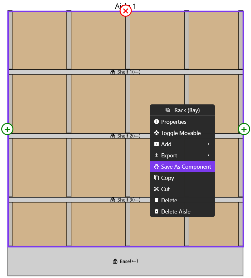 Components are reusable groups of products, fixtures, and other elements that are saved to the Filesystem, brought in from the Components Catalog and can be used in multiple planograms.