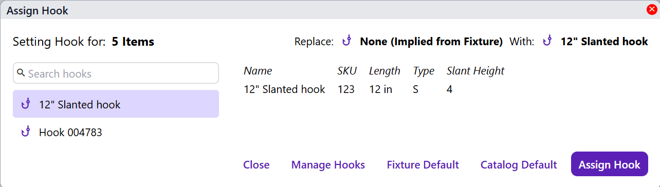 A Catalog Default Hook SKU can be provided (by a catalog admin). This will make that item default to the Hook with the given SKU by default -- though this default may still be overridden by explicit hook assignment.