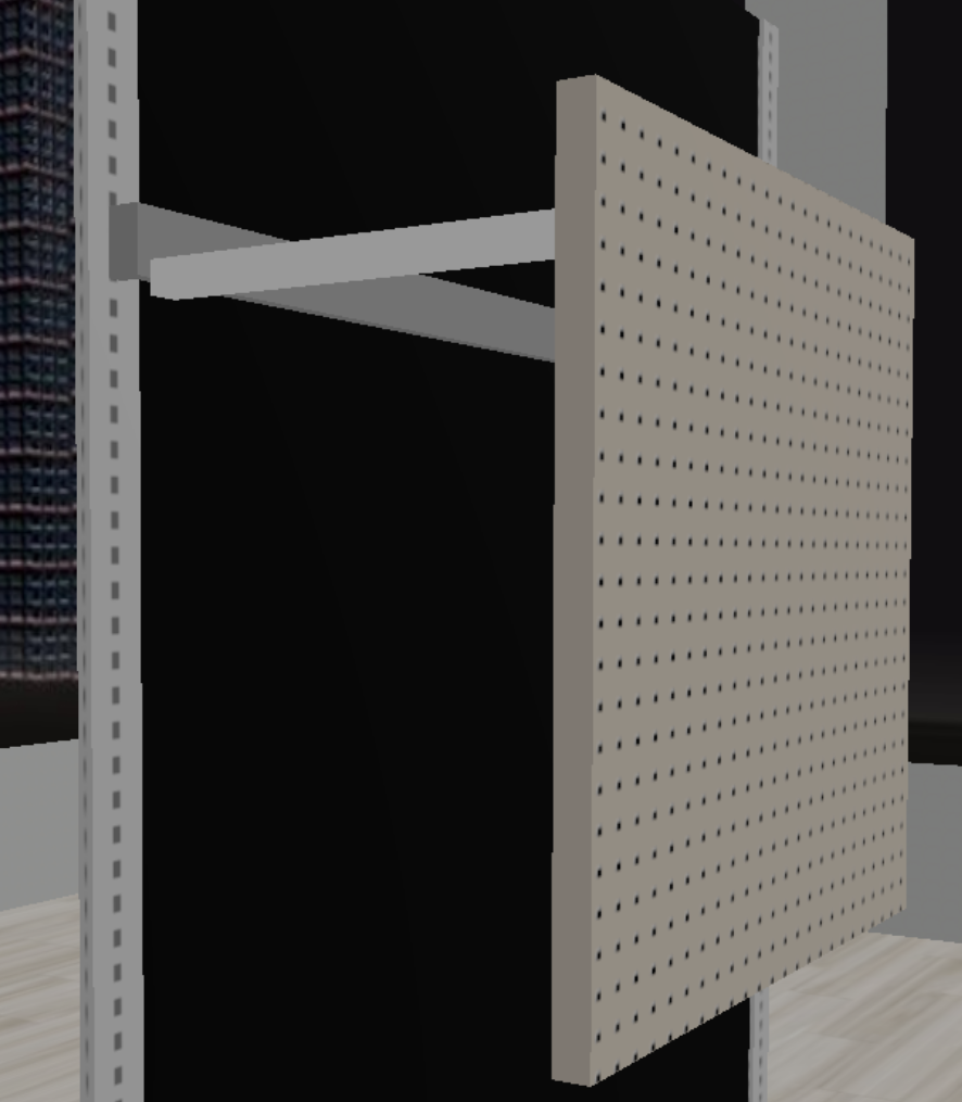 Only supports shelving; no pegged items allowed. Items dragged over this rack snap to the nearest shelf.