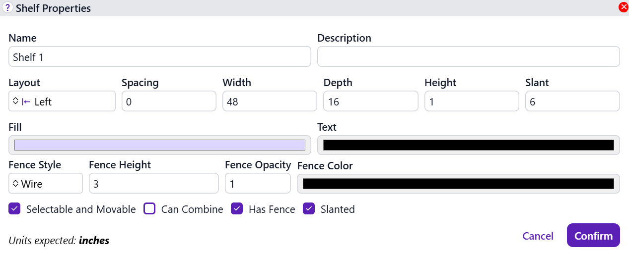 Both crop_16_9 Shelves and inventory_2 Containers may have a Fence if the Has Fence checkbox is checked.