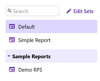 To create a report, you can access the Create Report dialog via File > Export > Report. On the left of the dialog, you will see a list of your site's Report Property Sets that you have access to.